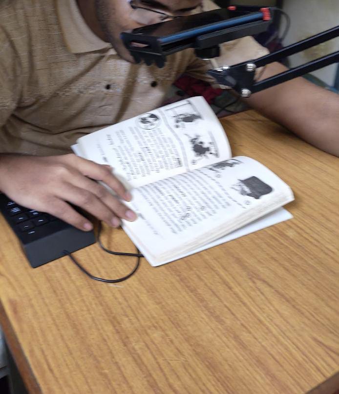Its first phase code named “Book to Voice” has the capability of scanning printed material and PDF files, extract text and convert them into speech.The embedded AI feature is capable of summarizing text in printed material and answer to the relqted questions asked. AI also describes the scene and identify the image features like Currency notes, Coins etc... It consists of an Android App that runs on the user device which is mounted on a stand or in a hand held mode. The device camera captures the open book page, extracts its text and read aloud. App supports all Indian languages including default language English. App also has translation feature that supports all Indian languages too.